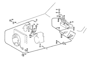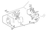 Brake line to fire wall. Electric cable to side member. Refrigerant compressor electric cable to oil delivery line clamp. Line to fire wall reinforcement. Electric cable to front seat. Line to right front wheel to body. Cable harness to tunnel. Wire cable to fire wall. Wire cable to right wheel arch panel.